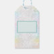 The quality and weight of the paper used was excellent. I love the feminine floral design. I gave received so many compliments on the unique cut of the tag. I also use these tags as a business card. This is my 3rd time ordering this design. I love it! I was very pleased with the printing. I was excited that I was able to print separate messages on both sides of the tag. Very clean look.