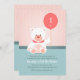 An adorable juvenile invitation featuring a white teddy bear holding a balloon.