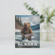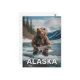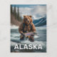 Postcard of a bear holding a fish in Alaska.