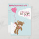 Simply sweet Valentine's Day card design featuring a vector illustration of a cute little brown bear floating in the sky with a pink heart-shaped balloon.