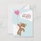 Simply sweet Valentine's Day card design featuring a vector illustration of a cute little brown bear floating in the sky with a pink heart-shaped balloon.