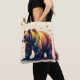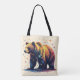 A majestic brown bear is surrounded by stars on this beautiful tote bag for shopping, the office, or at school.
