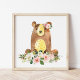 Bear, Woodland Animals, Boho, Pink Flowers Poster