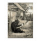 Artist: William Holbrook Beard. Pen and ink drawing, c. 1860. A bear chained in a barnyard holds a surprised dog while a donkey looks on from over the fence. Published as a card by Currier & Ives; the original caption to the image was the donkey saying: "I told you so!" Whimsical black and white drawing in sepia-tone.
