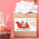 On these Holiday decorative stickers, a Bearded Collie Dog sits in a pretty red and gold decorative sleigh. Beside the dog sits gift packages tied with colorful bows. The gold script text at the right says "MERRY CHRISTMAS" and your custom text is in red. Perfect for your Christmas correspondence or gift packages! There are many other breed images and products at Dog Village.