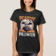 Smiling bearded dragon with bat wings sits on a rock, surrounded by jack-o'-lanterns, bare trees, and bats under a glowing full moon. A playful Halloween design.