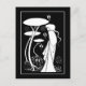 This beautiful image is adapted from illustrations done by famous artist Aubrey Beardsley for a special edition of Malory's "Morte D'Arthur", circa 1892. This postcard shows the witch sorceress, Morgan LeFay in a stylized garden. White on black.