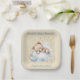 This design features an angelic boy teddy bear asleep on a cloud with gold foil stars all around him. Personalize these cute plates with the Momma to be's name and the baby shower date, with the easy to use customize button. Coordinating party items and a variety of matching designs are available in our shop!