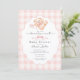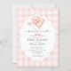 Celebrate the sweet arrival of a little one with this adorable “We Can Bearly Wait” baby shower invitation. Featuring a charming watercolor teddy bear with a pink bow and pacifier, this design sits on a soft pink gingham background with an elegant scalloped frame for a timeless, cozy look. Perfect for a baby girl shower, teddy bear theme baby shower, or classic nursery-inspired celebration, this invitation blends sweet charm with rustic elegance. Easily personalize the text with your event details to create a memorable invite for family and friends.