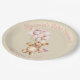 Personalize these cute teddy bear plates with the Momma to be's name and the baby shower date, with the easy to use customize it button. The design features an adorable fluffy teddy bear floating down with balloons. She's also holding a fancy rattle in her hand that is adorned with ribbons and bows. Coordinating party items available in our shop!