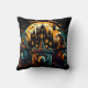 Bears celebrate Halloween under a spooky sky Throw Pillow