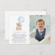 Beary 1st Birthday Bear Blue Balloon Flat Thank You Card with photo. The perfect thank you card for your little boys Bear themed 1st Birthday Party. Matching items available. Contact us if you need any help finding matching items.