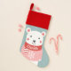 Customizable Christmas stocking featuring a fun cartoon white bear on a snowy background, with a pink sweater and red scarf.