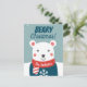 Customizable beary holiday postcard featuring a fun cartoon white bear on a snowy background, with a blue sweater and red scarf.