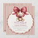 Celebrate the arrival of your little one with this adorable "We Can Bearly Wait!" baby shower invitation. Featuring a charming watercolor teddy bear illustration with a sweet bow, set against a classic red and white striped background with a decorative scalloped border. This design is perfect for honoring the mom-to-be and sharing the joyous news of your upcoming celebration. It perfectly captures a warm and loving atmosphere, making it a memorable keepsake for guests.