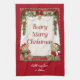 Pretty Victorian style design with two Teddy Bears in their Christmas outfits.The image has swagged drapes and garland with a generous assortment of Poinsettia and ornaments. Pretty red bows and bells accent the evergreen garland. Customize text area or delete.
