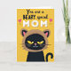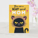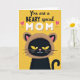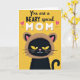 This card features a high-contrast graphic scene set on a goldenrod yellow background that fills the whole front with sunny warmth ❤️. Across the top, the message “You are a BEARY special MOM” is centered, with “You are a” and “BEARY special” in dark lettering and “MOM” in large, textured white letters. Two small pink hearts sit near the headline, adding a gentle, affectionate touch 🌼. Below the text, a stylized dark-furred animal looks forward with almond-shaped yellow eyes that feel tender and attentive, like it’s sharing a quiet moment with someone it adores. Its face is finished with a pink nose and a small white smile, giving it a friendly, caring expression. The animal wears a cozy brown hood with rounded ears and pink inner ear details, tying in with the “BEARY” wordplay. A dark curled tail appears at the lower right edge against the bright yellow field.