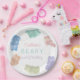 This cute "beary sweet" gender-neutral birthday paper plate features a white background with pastel color gummy bears, clouds, and stars. Personalize it for your needs. You can find matching products at my store.