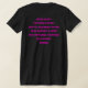 My overall review is that the T-shirt is nice, it fits true to size however the font is significantly smaller than advertised and you can't read it. The printing is unreadable and there is a strain to read it. It does not look like the advertised product. Maybe the shirt color is darker or a larger more visible font should have been used. Photos with and without flash and font is barely legible.