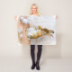 A charming vintage fleece blanket featuring a cute bunny girl drinking tea, painted by the English author and illustrator Beatrix Potter.