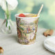 These favorite characters of Beatrix Potter stories are a favorite for little ones. This image features English garden greenery amidst a forest setting with many of Peter's friends and neighbors. Jemima Puddleduck, the Flopsy Bunnies, and Mrs. Tiggywinkle and many others make this a cute and whimsical paper cup for your special event.