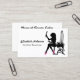 Attract new clients and customers with these girly pink and black certified beautician business cards with a silhouette of a woman hairstylist wearing chic pink high healed shoes sitting on a vintage stool with her mirror at her makeup artist vanity. Personalize these chic professional hair salon business cards by adding the name of beauty consultant.