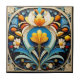 Add a touch of class to your home with an Art Deco Flowers ceramic tile. This botanical design has the flowing, natural lines that are the base of the Art Deco style. The many shades of blue, yellow, and orange, bring a sophisticated elegant style to any space. This ceramic tile is ideal for a backsplash, wall art, or as a stand alone piece of art.