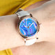 An elegant rose gold watch with a beautiful blue liquified abstract design. This pretty watch comes with an elegant white leather wristband. The watch face has a text message. Text and photos are customizable, and can be easily personalized to fit your needs. This unique and beautiful watch is the best gift for your wife, girlfriend and mom. Great gift for birthday, wedding, anniversary, holiday, Valentine’s Day, Mother’s Day , and for yourself!