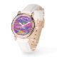 An elegant rose gold watch with a beautiful pink, red and blue liquified abstract design. This pretty watch comes with an elegant white leather wristband. The watch face has a text message . Text and photos are customizable, and can be easily personalized to fit your needs. This unique and beautiful watch is the best gift for your wife, girlfriend and mom. Great gift for birthday, wedding, anniversary, holiday, Valentine’s Day, Mother’s Day , and for yourself!