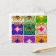 Star-like/Floral Motif: At the center of each square lies a star-like or stylized floral motif, varying in color and design across the grid. This variety adds to the sense of movement and dynamism within the artwork.