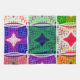 Star-like/Floral Motif: At the center of each square lies a star-like or stylized floral motif, varying in color and design across the grid. This variety adds to the sense of movement and dynamism within the artwork.