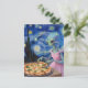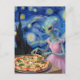 beautiful alien in a pink dress eats pizza postcard