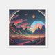 Alien planet landscape Psychedelic Space banner template, background Horizontal illustration of the future with mountains, planets, trees, moon Surrealist escapism