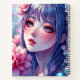 Pretty purple and pink flowers and anime girl with striking eyes feminine notebook.