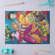 Colourful and whimsical dolls with Christmas ornaments ,Watercolor painting by Bulgan Lumini (c).