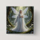 A beautiful fairy wearing a flowing white dress and a necklace made of diamonds with daisies and diamonds in her long silvery-white hair and iridescent white dragonfly-like wings holding a daisy stands in a magical forest surrounded by daisies and moss covered trees.