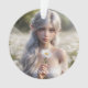 A beautiful silver haired fairy with transparent wings wearing a pretty white dress and diamond jewelry holds a single white daisy while standing in a field of daisies. The text can easily be changed or deleted if you would like the picture without text.