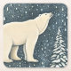 A fun artsy design featuring an enchanting majestic Polar Bear looking up into the Artic night sky, while large fluffy white snowflakes are falling down all around him.