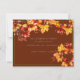 Save the date card with pretty fall leaves in shades of orange, red and yellow against a rustic copper color background.