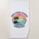 Gorgeous custom tropical vacation or family reunion beach towel. Features vibrant beach scene with palm trees. Perfect for laying around the pool or lounging on the beach. Dry off in style and commemorate your amazing family vacation, reunion, or event. Customizable trip/family name, location and year.