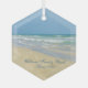 Beautiful beach ornament with gorgeous seaside photography featuring a pretty sandpiper standing at the edge of the ocean waves on a sunny summer day. Lovely blue green water waves roll onto the sandy shore where your name is personalized in cute teal typography. A beautiful Christmas gift for a daughter, mom, grandmother, or granddaughter.