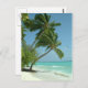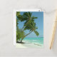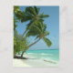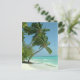 Photograph of palms, sand, ocean, sky of a Maldives beach.