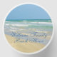 Beautiful beach house mini candle for a tropical island vacation rental. Decorated with gorgeous seaside photography featuring a pretty sandpiper standing at the edge of the ocean waves on a sunny summer day. Lovely blue green water waves roll onto the sandy shore where your name is personalized in cute blue typography.