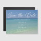 This beautiful beach save the date magnetic card features a serene photo of the ocean horizon for a destination wedding on the coast during the summer. Invite your guests to a lovely tropical wedding on a seaside afternoon at your favorite island with this pretty photography. Completed with chic white script for an upscale coastal look.