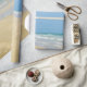 This beautiful seaside wrapping paper features a cute sandpiper on the sand of the pretty beach looking at the pretty blue green waves of the ocean. I love this island gift wrap.