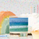 This beautiful beach wedding candle features a gorgeous photo of the ocean waves for a destination wedding favor or newlywed keepsake. Pretty beach photography paired with elegant white and blue typography creates a chic, modern look for a tropical island event.