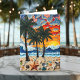 Wishing a friend or family member a happy birthday with this birthday card featuring an impasto oil painting style ai illustration of a beach full of palm trees, sea glass, sea shells and ocean waves at sunset. A bright colorful mesh of colors make this coastal art vibrant and beautiful!