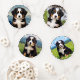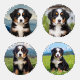 A charming set of coasters, each featuring a heartwarming illustration of a Bernese Mountain Dog in a playful, natural setting. The artwork is rendered in a realistic style, capturing the gentle gaze and fluffy coat of the breed. The background subtly hints at a mountain landscape, evoking the dog's heritage. These coasters combine functionality with a touch of canine charm. Perfect for everyday use or entertaining, they make a thoughtful gift for Bernese lovers and a delightful addition to any home décor.