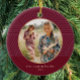 This beautiful berry red holiday ornament features a center circular framed photo, and name and year in simple typography. This trendy ornament features a plum striped geometric pattern on a deep berry color background. Please view this festive seasonal collection for additional color options and coordinating Christmas cards.
