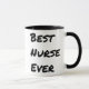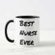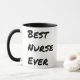 A beautiful coffee mug, this item displays "Best Nurse Ever" on both sides of the mug written in big bold back font. With black interior and handle, order yours today!